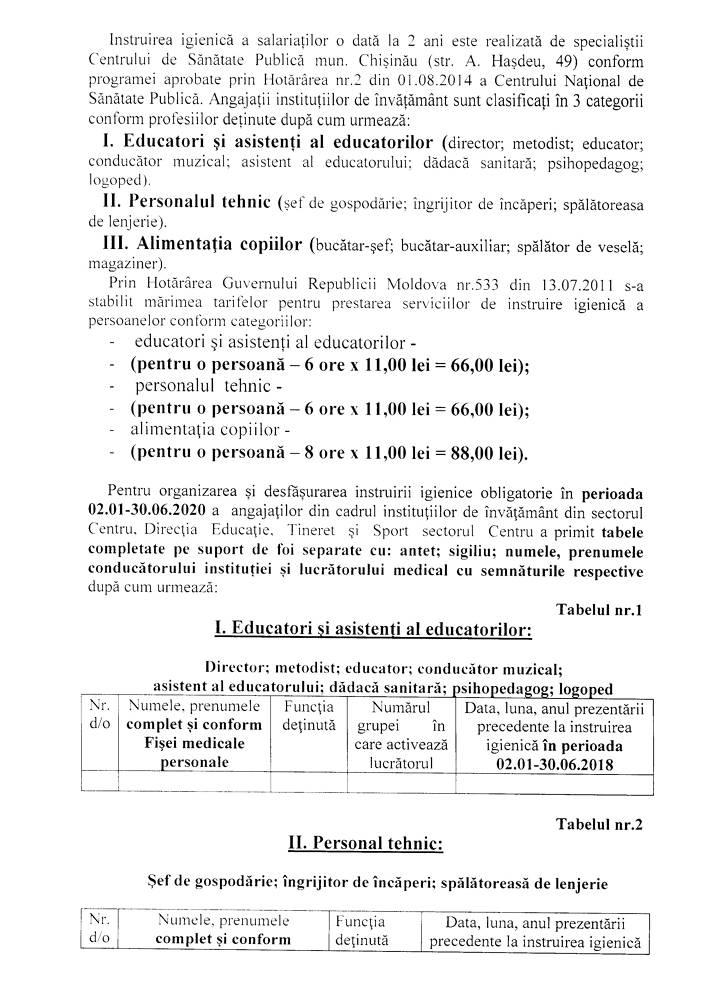 Nota informativa Instruirea igienică obligatorie а angajaților