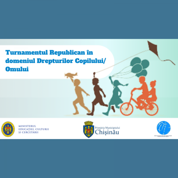 În conformitate cu Programul activităților extrașcolare în învățământul general pentru anul 2021, aprobat prin ordinul MECC nr. 196/2021 și în scopul diseminării bunelor practici în promovarea valorilor democratice, în perioada 01 aprilie – 14 mai 2021, se organizează Turnamentul republican în domeniul Drepturilor Copilului/ Omului.