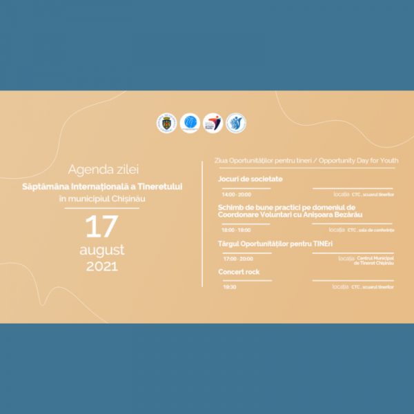Cu acest slogan, Direcția Generală Educație, Tineret și Sport vă invită să participați activ la toate activitățile planificate de Centrul Municipal de Tineret Chișinău în perioada 12-19 august.